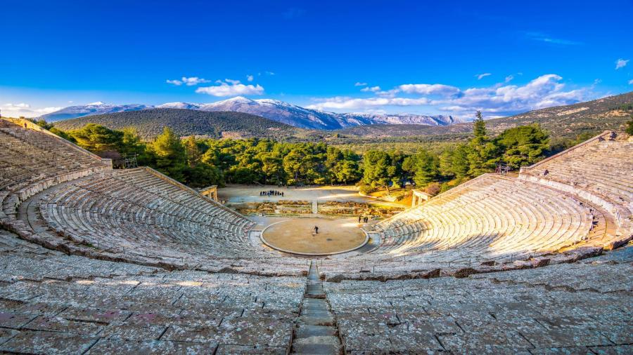 Epidauros - najlepiej zachowany antyczny teatr grecki z niezwykłą akustyką, Sanktuarium boga sztuki lekarskiej Asklepiosa. Przejazd do